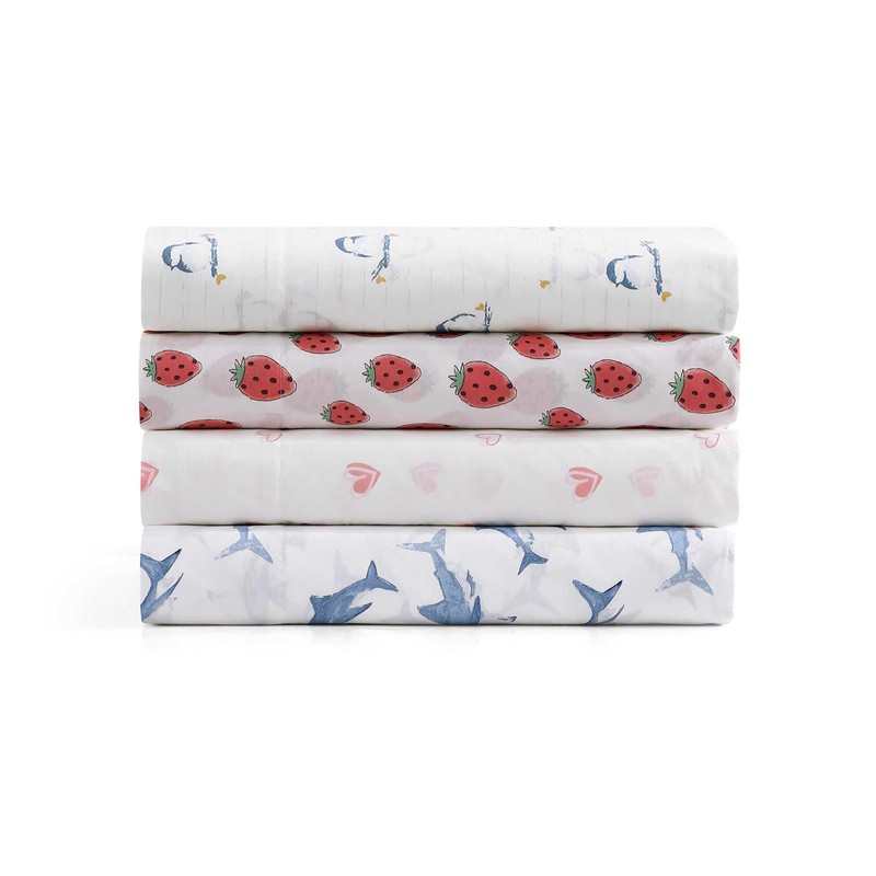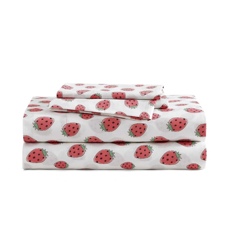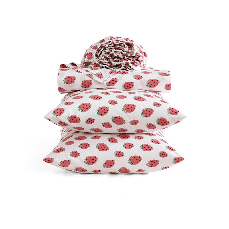 Poppy & Fritz - Queen Sheets, Luxurious Cotton Percale Bedding Set, Crisp & Cool, Super Soft Bed Essentials (Strawberry Picnic Pink, Queen)