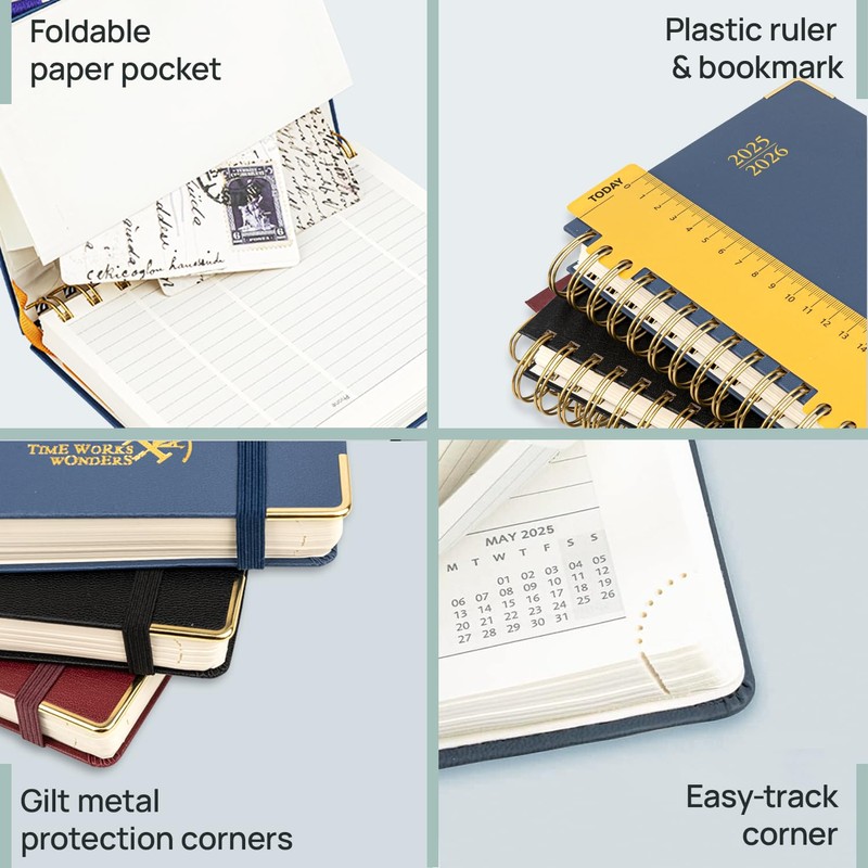 - [UNIQUE QUICK SEARCH] "Today" ruler for quick navigation; Easy-track Corner are designed to mark any date you want.