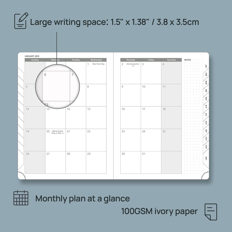 - EXTRA FUNCTION PAGES: This 2025 weekly planner also contains "2025-2026 Yearly Overview" Page + "2025-2026 Holiday & Calendar" Page + Monthly Expenses Page+ Contact & Password Pages + 7 Dotted Notes Pages for jotting down your ideas, thoughts or any other happy things in detail.