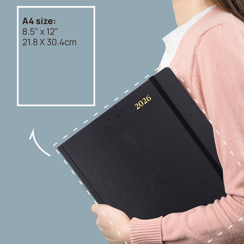 - A4 LARGE SIZE - The size of this 2026 daily planner is 8.5" x 12". It is slightly smaller than a 14" laptop, providing ample space for detailed writing and planning.