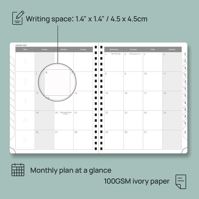 - EXTRA PAGES: This 2025 weekly planner also contains "2025-2026 Yearly Overview" Page + "2025-2026 Holiday & Calendar" Page + Contact Pages +Password Page + Dotted Notes Pages for jotting down your ideas, thoughts or any other happy things in detail.
