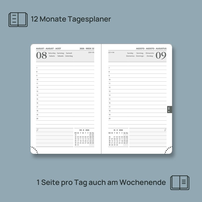 • 1 PAGE PER DAY FOR 365 DAYS: This POPORUN daily planner (Jan.2026-Dec.2026) offers spacious daily planning with hourly plans for your appointments that organize your busy daily routine (from 08:00 to 20:00).