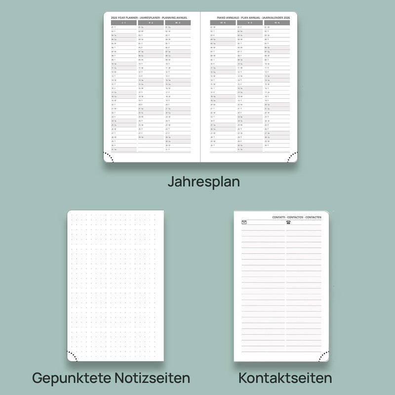 • MONTHLY PLANNER/ANNUAL PLANNER The monthly planner of this calendar provides a complete and clear monthly overview, with international holidays marked for the month. The year planner contains an annual overview for 2025 and 2026.