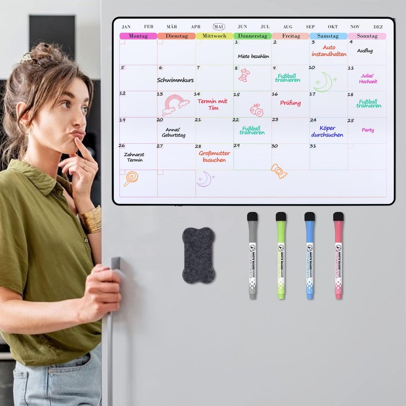 - 【Erinnerungshilfe】Dieser Memoboard ist nicht nur in der Monatsübersicht und auch in der Wochenübersicht, man hat eine gute Terminübersicht für den ganzen Monat oder die ganze Woche, kann Ihre anstehenden Termine einschreiben, Dienstplan zu organisieren oder als Notiz für Wohngemeinschaft benutzt werden.