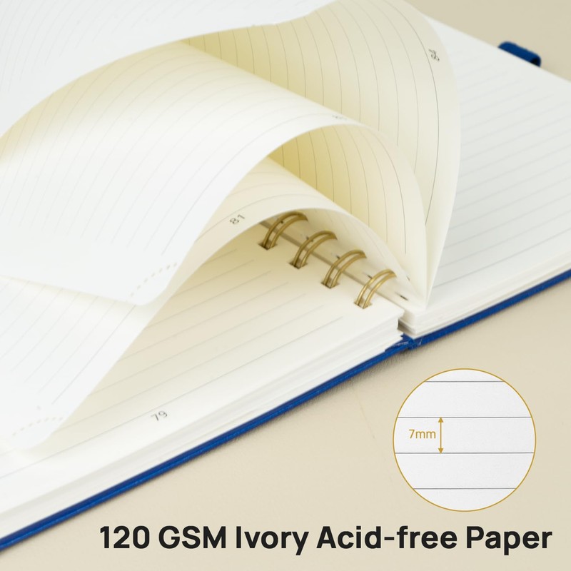 - [PREMIUM QUALITY PAPER]Experience the joy of writing with 120gsm Ivory acid-free paper and 7mm college ruled lined space, featuring ultra-smooth, bleed-resistant paper.