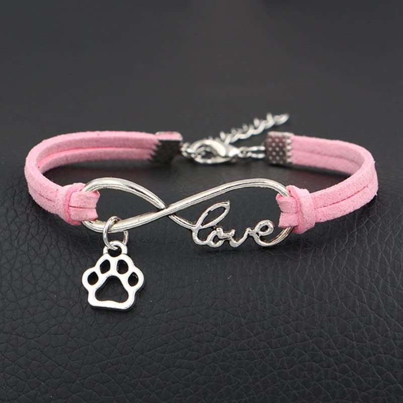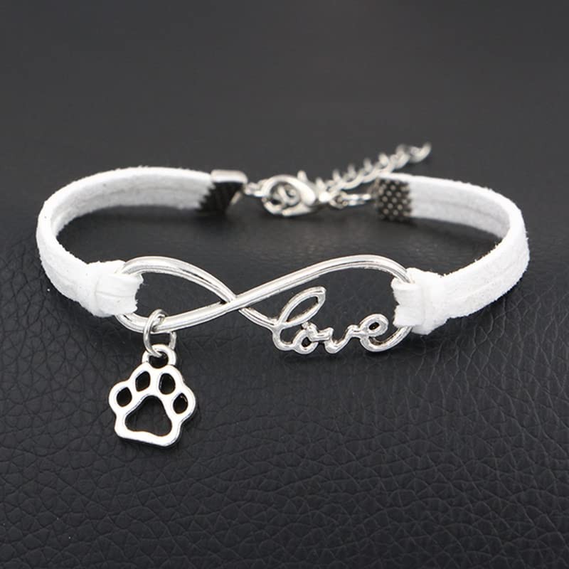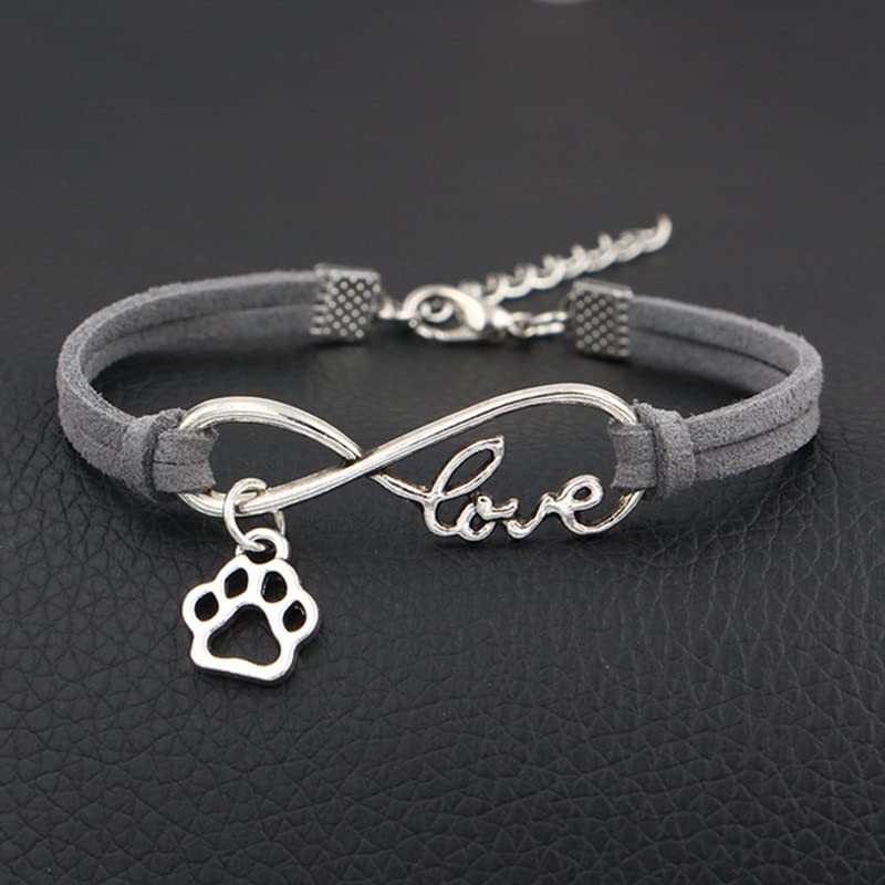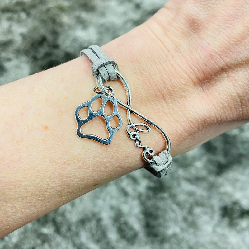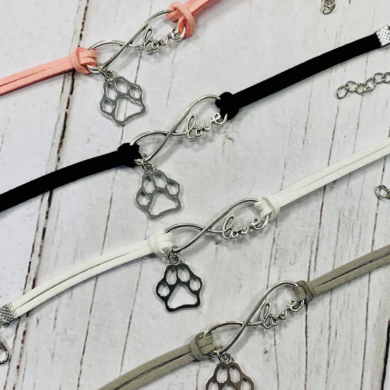 Pops & Coco Love Paw Print Suedette Bracelet Pretty Silver Pink Black White Grey Adjustable Pet Dog Cat (Grey)