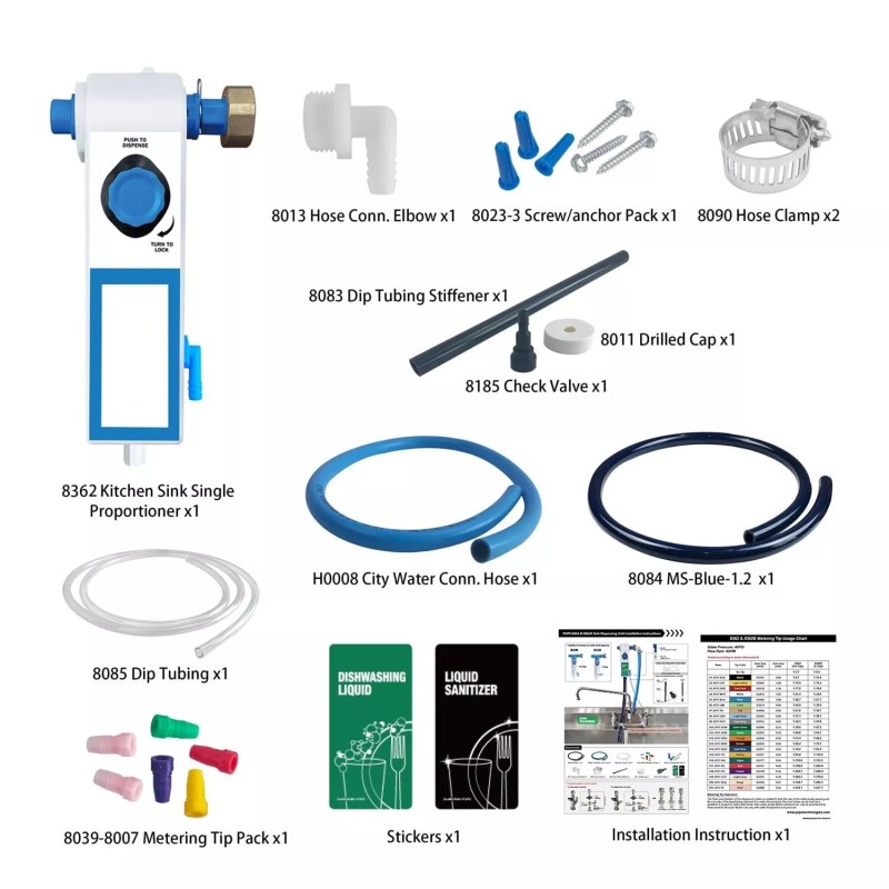 POPS Kitchen Sink Single Proportioner, Dish detergent Sanitizer, Push Button, 8362