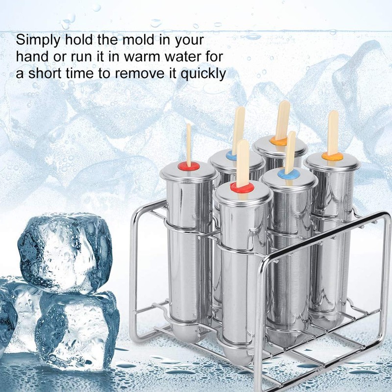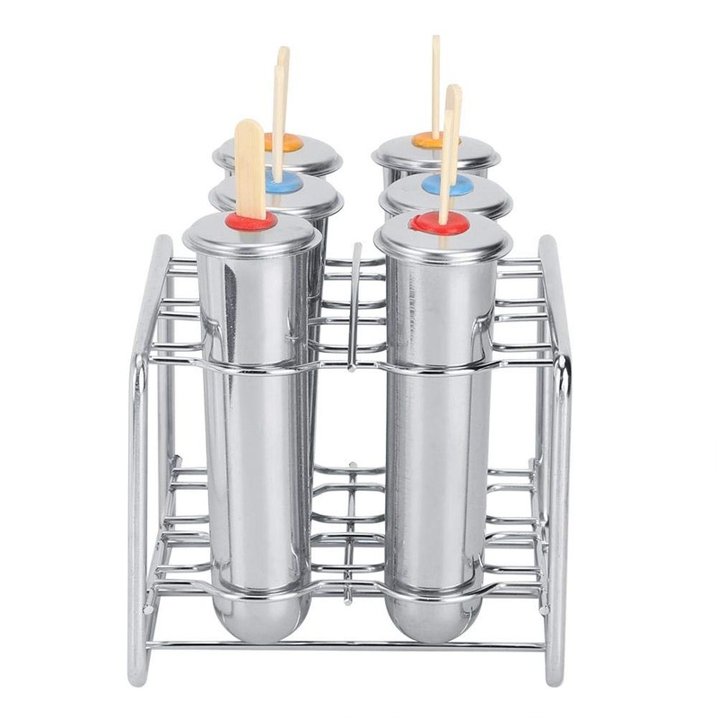 Popsicle Molds Set, 6PCS 304 Stainless Steel Ice Lolly Moulds Round Head Round Cup Ice Cream Mold Popsicle Mold Double Groove