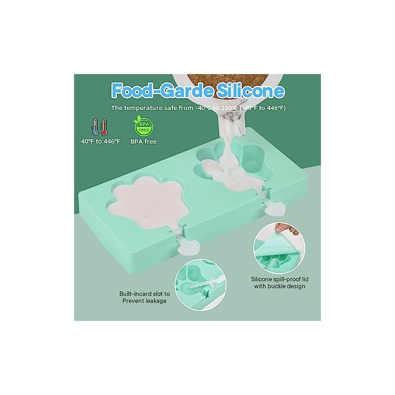 - MADE OF TOP-LEVEL PROFESSIONAL SILICONE - Aokinle silicone Ice Pop Models are made of high-quality food-grade silicone material and pp stick. BPA-free Popsicles Molds with soft properties will not crack or break even if frozen for a long time. Durable environmentally friendly. Ice pop mold that withstands up to 464 °F and down to -41 °F.