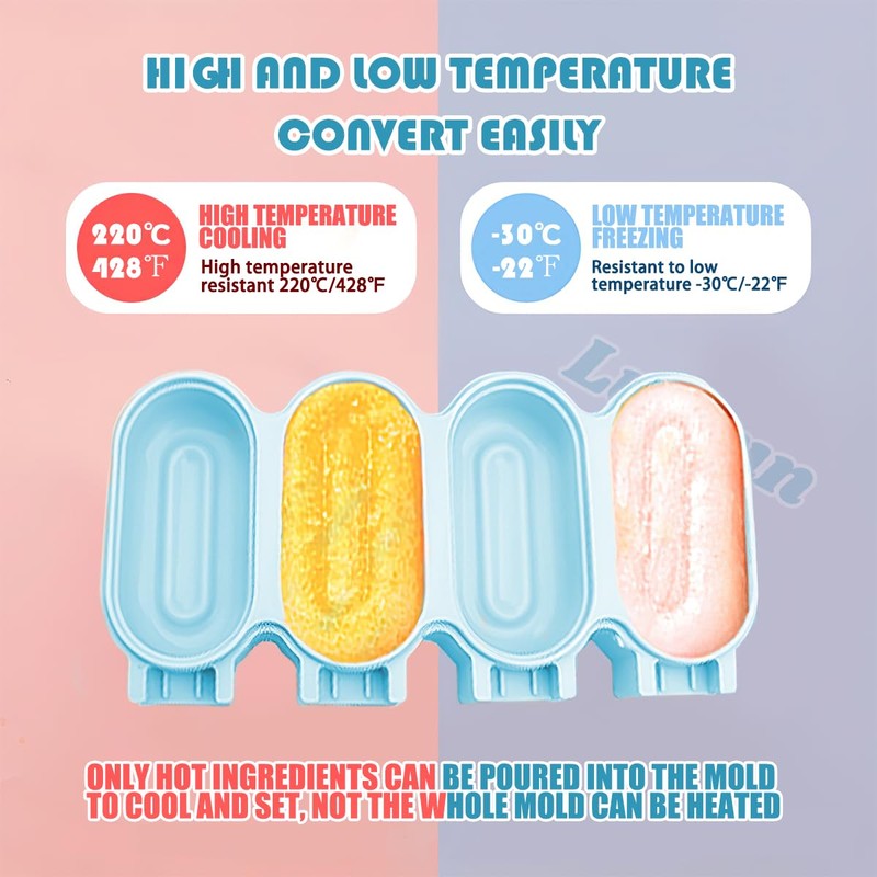 - The molds are made of high quality food grade silicone, soft and easy to release, high temperature resistant (220℃/428℉) and low temperature resistant (-30℃/-22℉), reusable, safe and non-toxic, suitable for making all kinds of cold drinks and desserts.