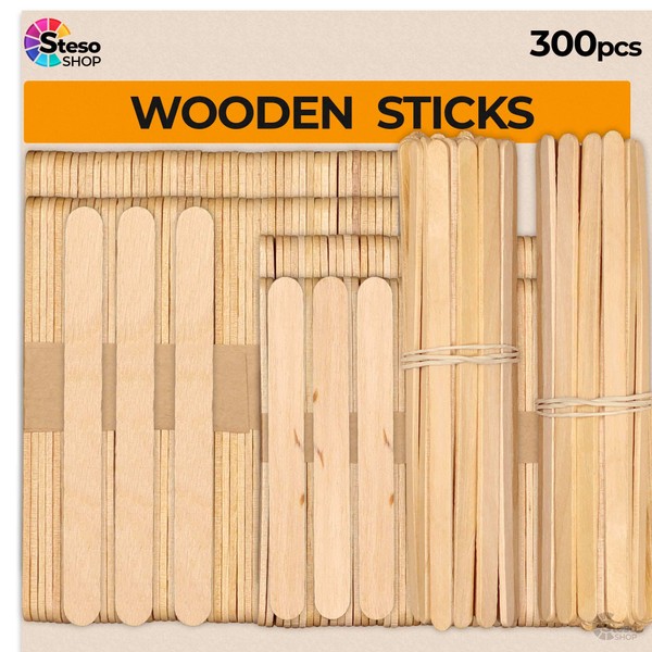 Popsicle Stick Craft Supplies 300pcs - Premium Quality - Jumbo Craft Bulk Popsicle - Mixed Sizes Assorted Multi Mini Large Wood Stick Strips Wax - Craft for Kids…