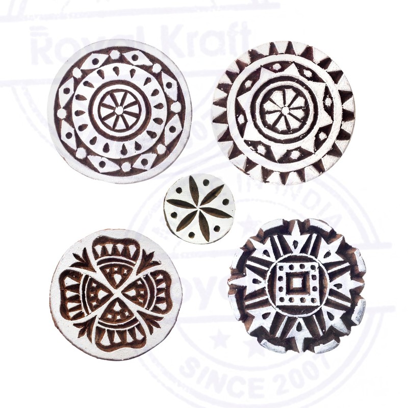 Popular Designs Round and Floral Wooden Printing Blocks (Set of 5)
