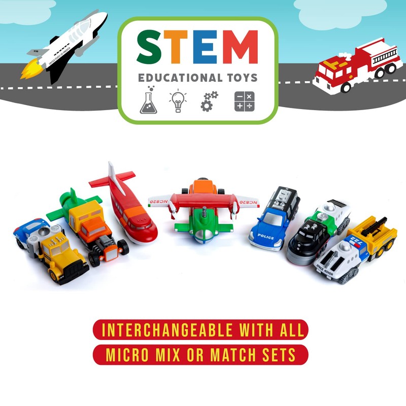 - SNAP TOYS: Put together a whole city of vehicles when you build an airplane, a fire truck, and more and then mix up the pieces to build dozens of different vehicle combinations!