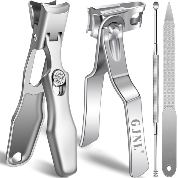 - 🎁【Great Value Set】GJNL nail clippers set includes 1x anti- splash large opening nail clippers for thick nails, 1x 360°Rotating Nail Clippers for Seniors, 1x nail file, 1x double-ended ear pick, packed in a beautiful carton. One set for any nail type, including men's, women's, seniors' and even pet's nails.