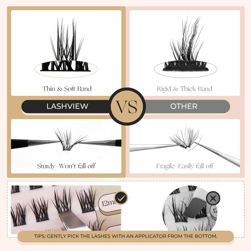 - Subtle Fullness and Length - Achieve a stunning 3D layered effect that appears natural and vibrant with these lightweight cluster lashes, enhancing your lashes with a subtle fullness and added length.
