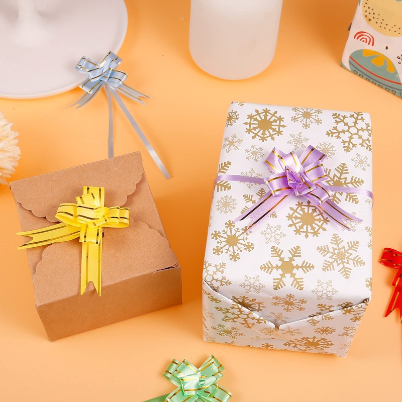Popuppe 100 Pcs Pull Bows,Present Basket Knot Ribbon,Bows Wrapping Pull Bows,Present String Wrapping Decorative Bows for Wedding Birthday Present Gifts