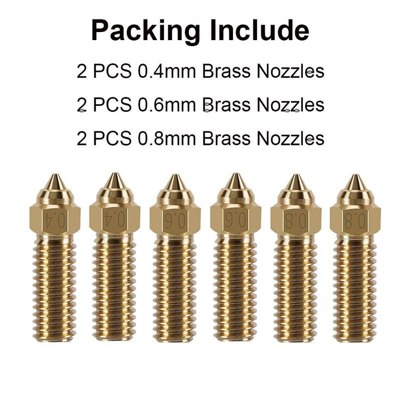 kit include Brass Nozzles 2pcs 0.4mm + 2pcs 0.6mm + 2pcs 0.8mm . as on the picture.
