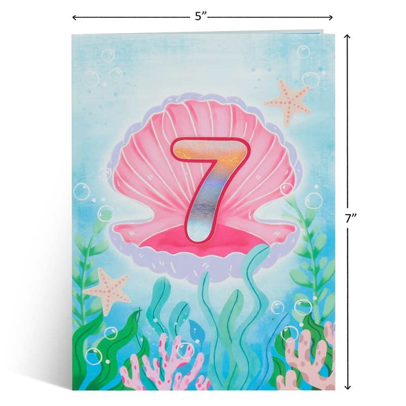 POPWOW Happy 7th Birthday Pop Up Card, Mermaid, Pearl Shell, Ocean, 3D Greeting Card, Gifts for Girls, Daughter, Granddaughter, Niece, 5x7 - Includes Envelope And Message Note