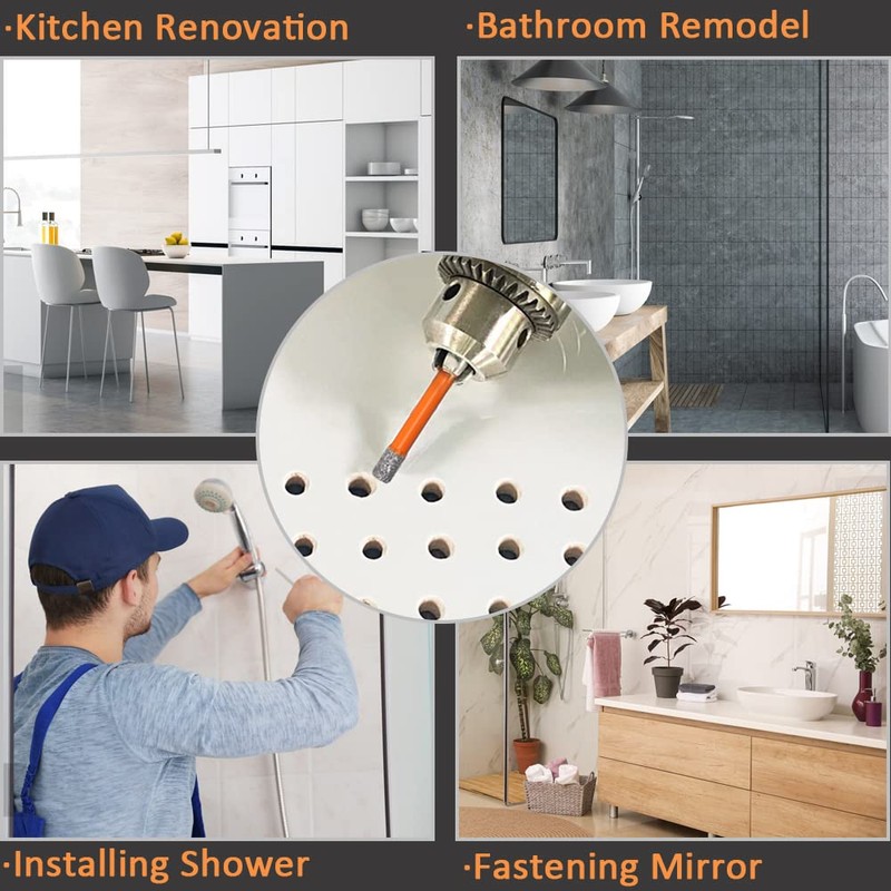 - 【Wide Applications】--Worked great for dry drilling holes through porcelain tile shower walls, ceramics, bathroom tile,marble granite,stone,masonry,brick,stucco,counter top with ease