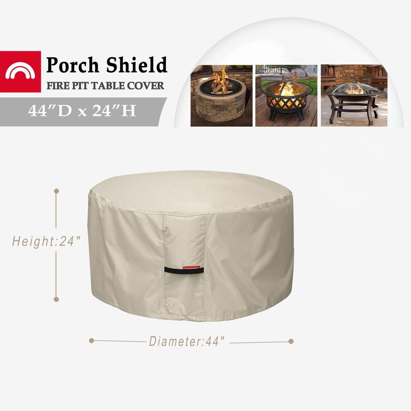 Porch Shield Fire Pit Cover - Waterproof 600D Heavy Duty Round Patio Fire Bowl Cover Beige - 44 inch