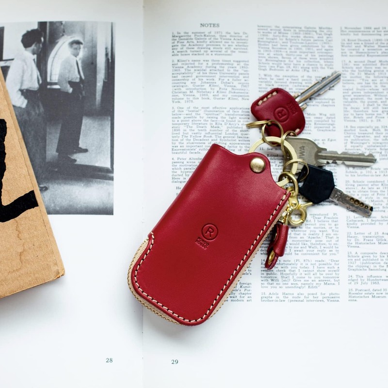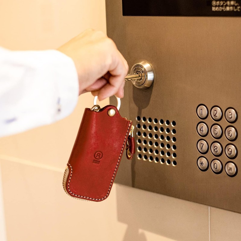 Porco Rosso Key Case, Smart Key Case, Men's, Women's, Leather, Original Tochigi Leather, Made in Japan - red