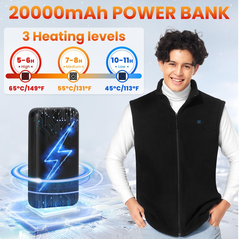 - 【2025 New Warmth Comfort Polar Fleece Material】-- The heated vest utilizes updated, highly cold-resistant polar fleece material that immediately warms you up when you put it on and prevents any cold feeling. It brings comfort and warmth to the next level while making you look fashionable as well