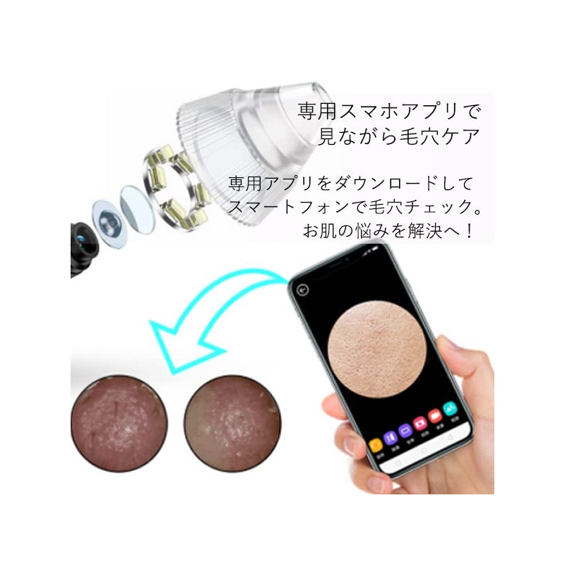 Pore Suction Machine with Camera, White, Pore Care, Facial Beauty Device, Suction Connected with Smartphone, Square Plug, Blackheads, Pore Dirt, Face Care