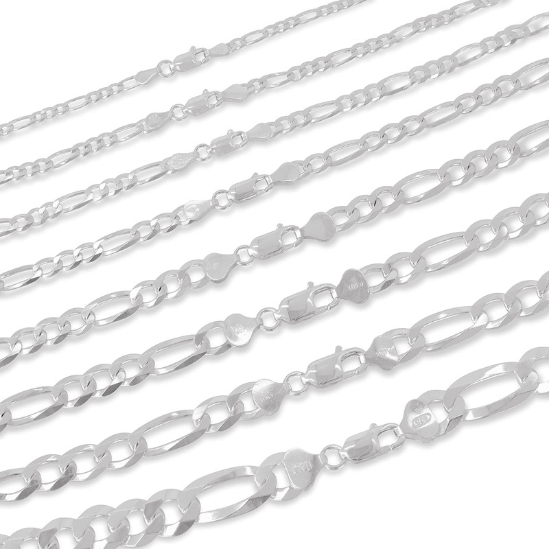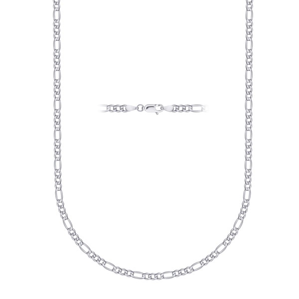 PORI JEWELERS Sterling Silver 3MM Solid Figaro Chain Necklace- Made in Italy- Available in Multiple lenghts-18