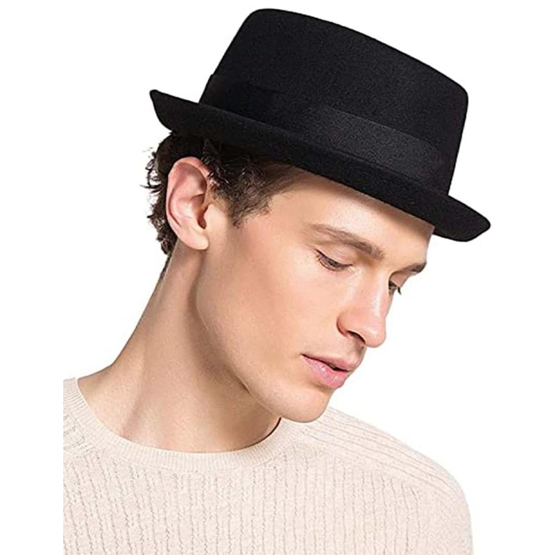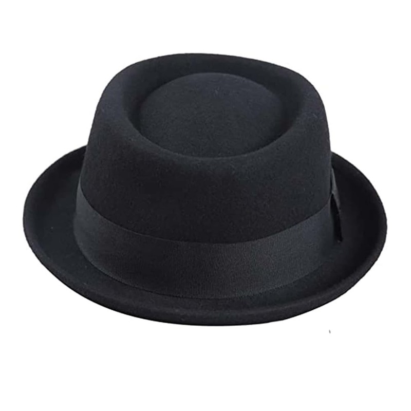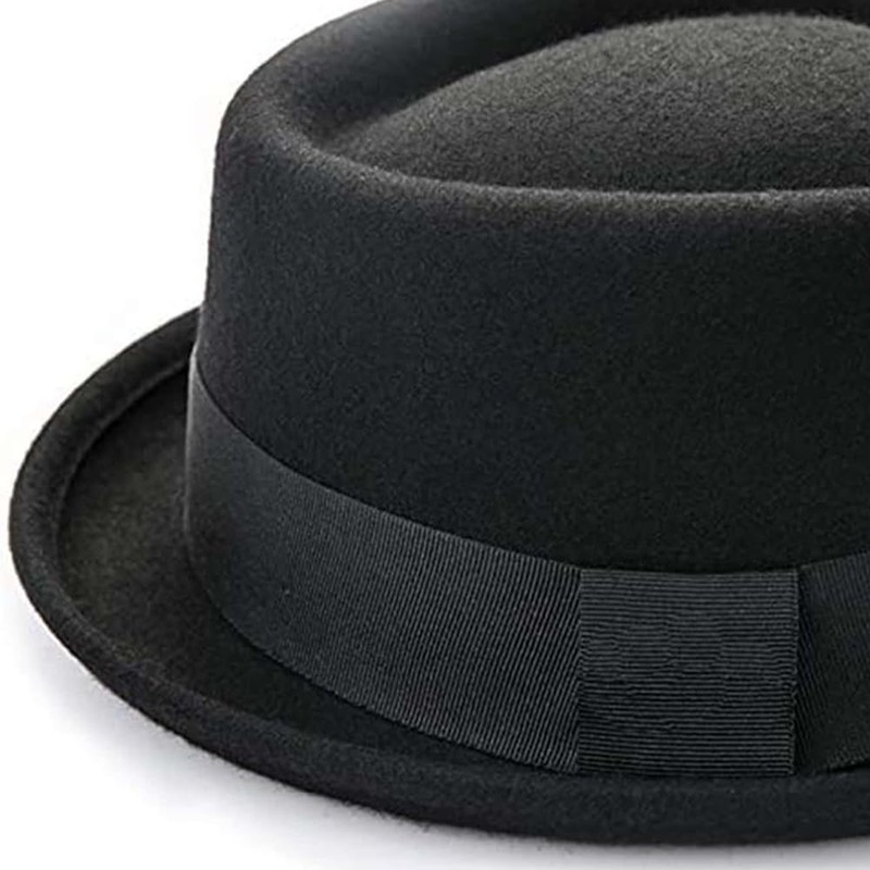Pork Pie Hat Breaking Bad Hats Porkpie Hats Wool Felt Heisenberg Hat Mens Brimmed Hats Fedora, Black, Large