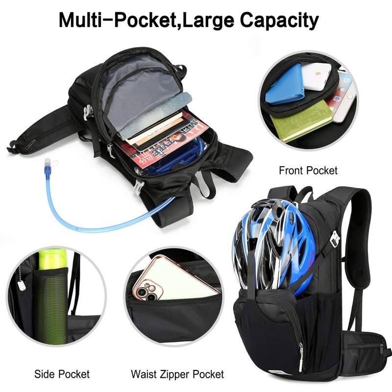 - ★LARGE CAPACITY: With large storage space, this backpack features 1 main pocket, 1 inner compartment, 2 front pocket, 2 side mesh pocket, 2 side zip pocket and 1 helmet shelf. With the large capacity, you can easily organise all your important items. Weight: 0.51kg Size: 24 x 11 x 51 cm (L x W x H).