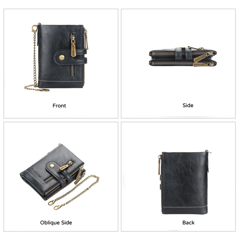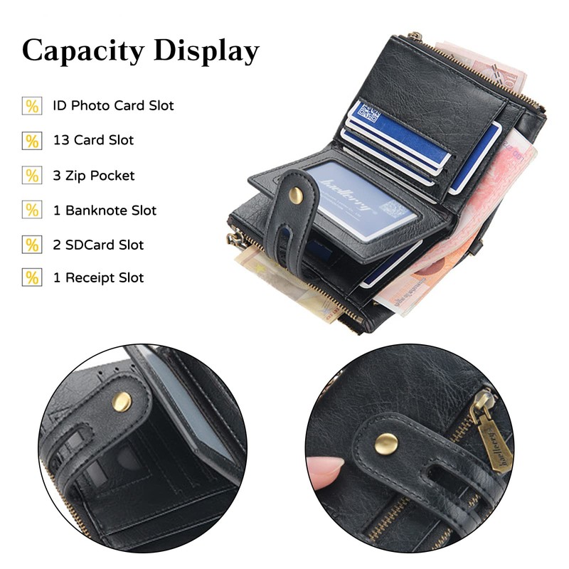 PORRASSO Wallet Men's Card Holder Bag PU Wallet Portable Wallet with 13 Card Slots Black