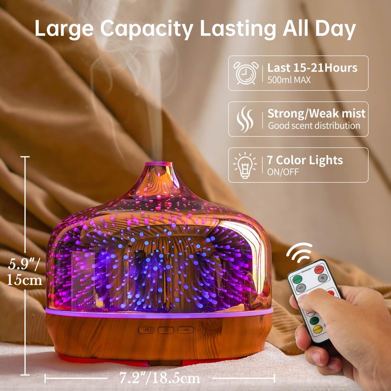 - UNIQUE ART DECORATIVE DESIGN - Our 500ml glass essential oil diffuser has an elegant starry pattern glass cover and wood grain decorative base.It is very suitable for your bedroom, living room, children's room, study room, office and yoga room.