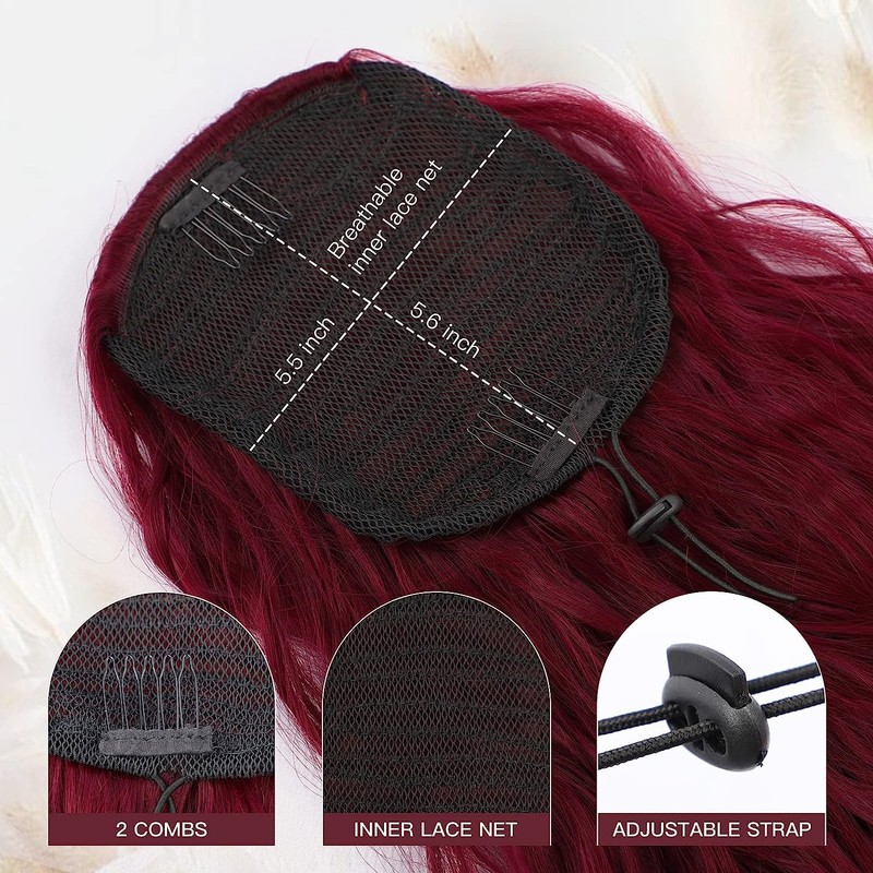 - Ponytail information: ponytail extension with drawstring. Length: approx. 76 cm / 30 inches; colour: wine red.