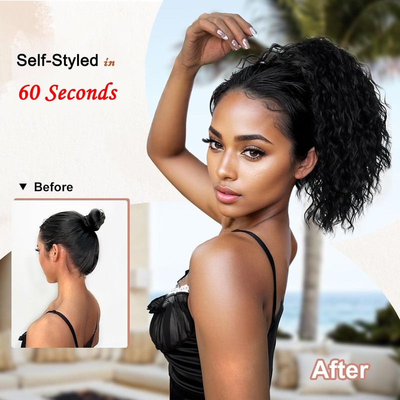 - ✨ Change your hairstyle in minutes - Simply tie your hair into a bun, then attach the drawstring ponytail extension for a perfect wavy ponytail. Great for time-saving and beginner-friendly.