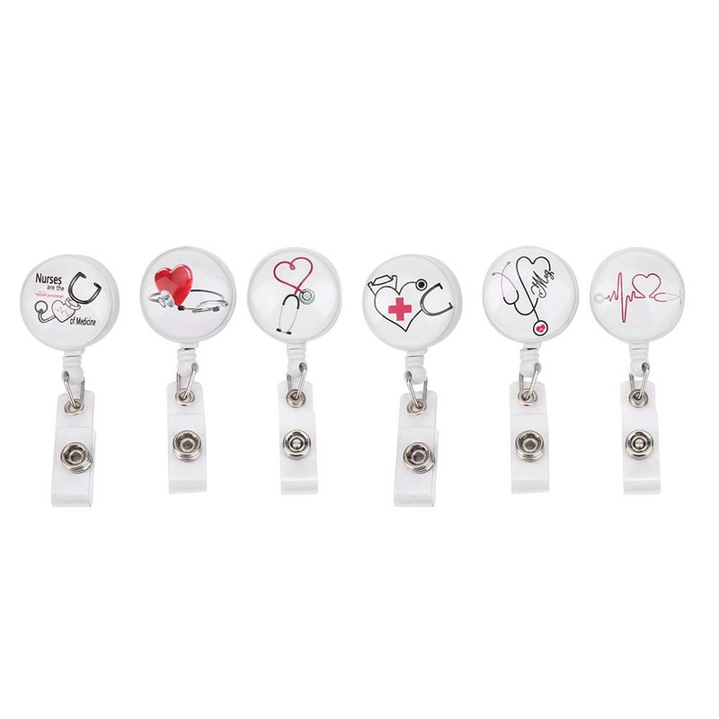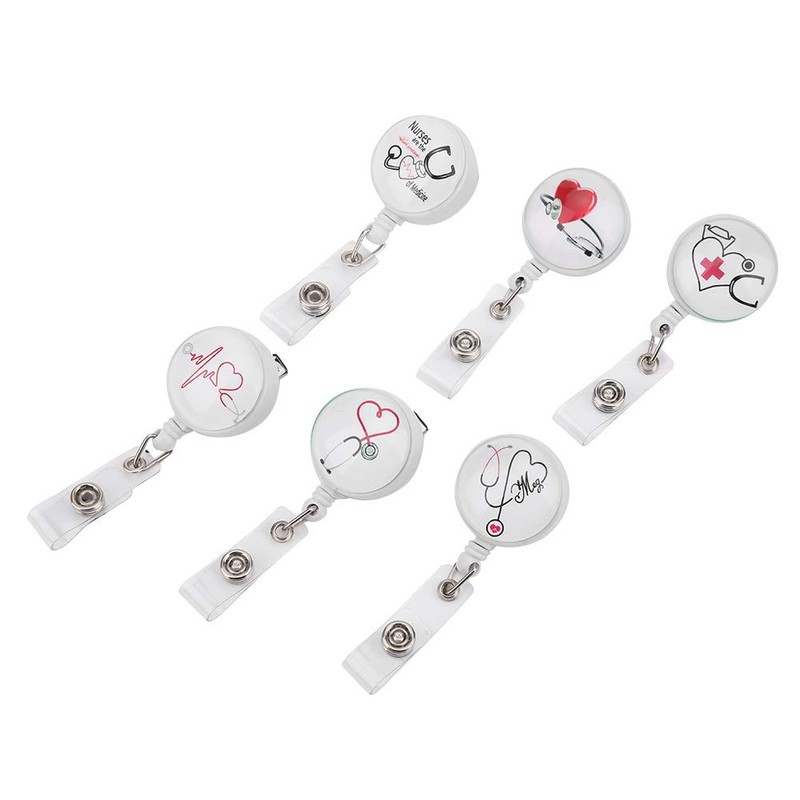 Porta-credenciales ABS Carrete de Insignias Retráctil Clip Giratorio de 360 Ggrados Portátil Enfermera ID Tarjeta de Nombre Porta-credenciales Accesorio