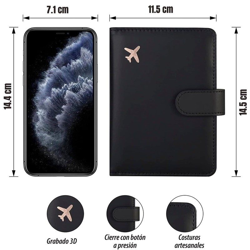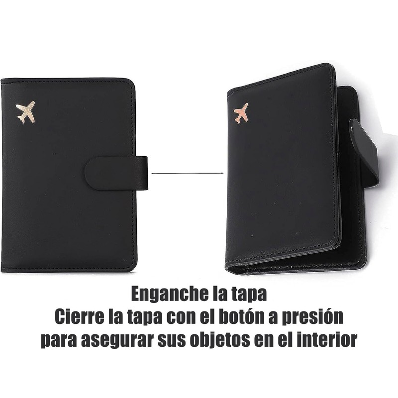 - Cierre de botón a presión: el soporte para pasaporte con banda elástica y diseño de cierre magnético oculto, que es seguro y confiable para proteger sus artículos de viaje contra pérdida, se puede acceder rápidamente a la billetera de viaje después de recoger o devolver su pasaporte.