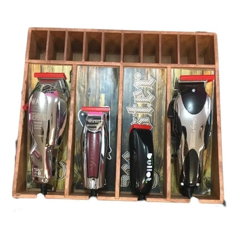 - Porta maquinas de madera con capacidad para 4 maquinas.