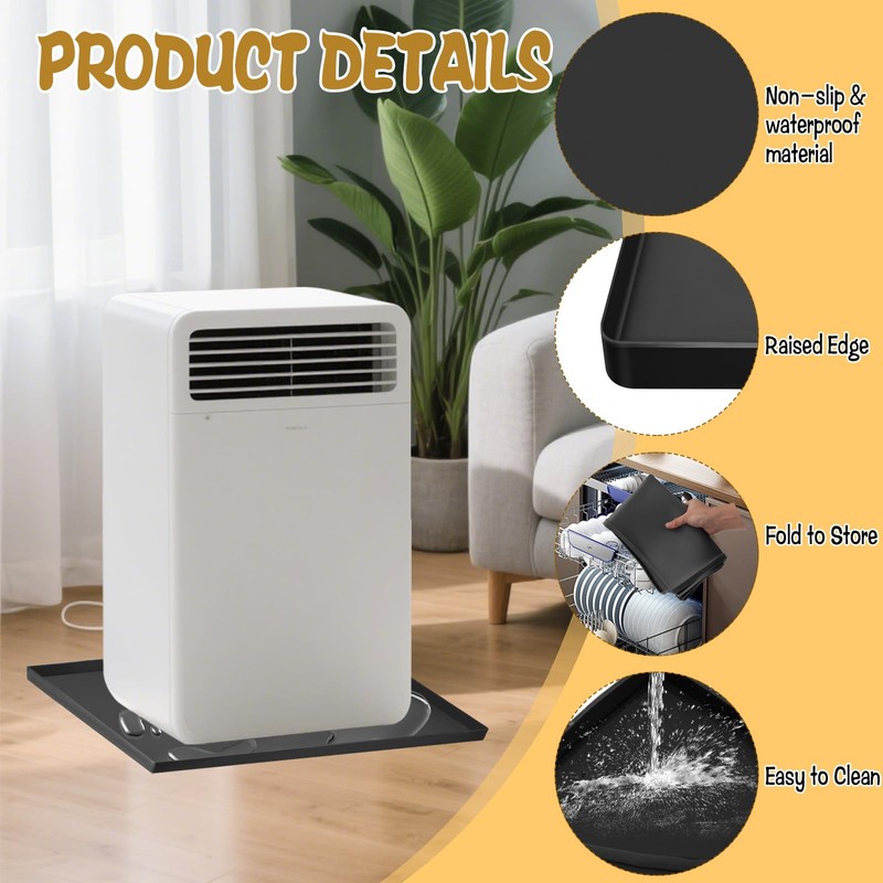 - Premuim Material: Portable air conditioner drip tray is made of quality silicone material, waterproof, durable, flexible, not easily damaged or broken. With non-slip design, the AC drip pan can ensure that both the drip tray and the air conditioner do not move easily, providing an excellent protection for your floor.