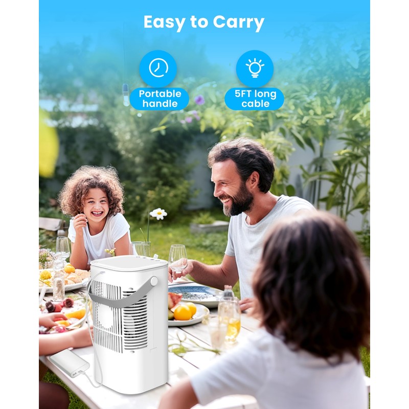 - ❄️Portable Air Cooler❄️: Mini air conditioner measures 5.5x5.1x10.2 inches and weighs only 1.8lbs, making it easy to carry wherever you go, whether at home or during your travels. Powered by USB, it can conveniently connect to charging banks, computers, sockets, and more. Please note that this product requires a power source and is not battery-operated.
