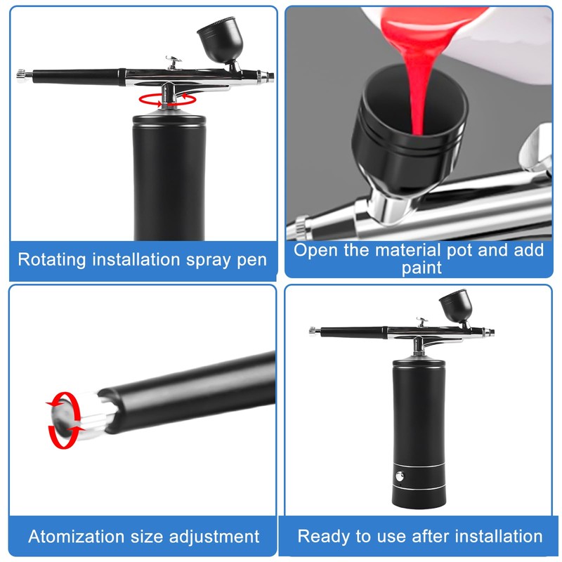 This is a wireless airbrush kit. Looks stylish with metal housing, portability and compact size, easy to carry, adopting a portable design with batteries, you can use this wireless airbrush almost anywhere.