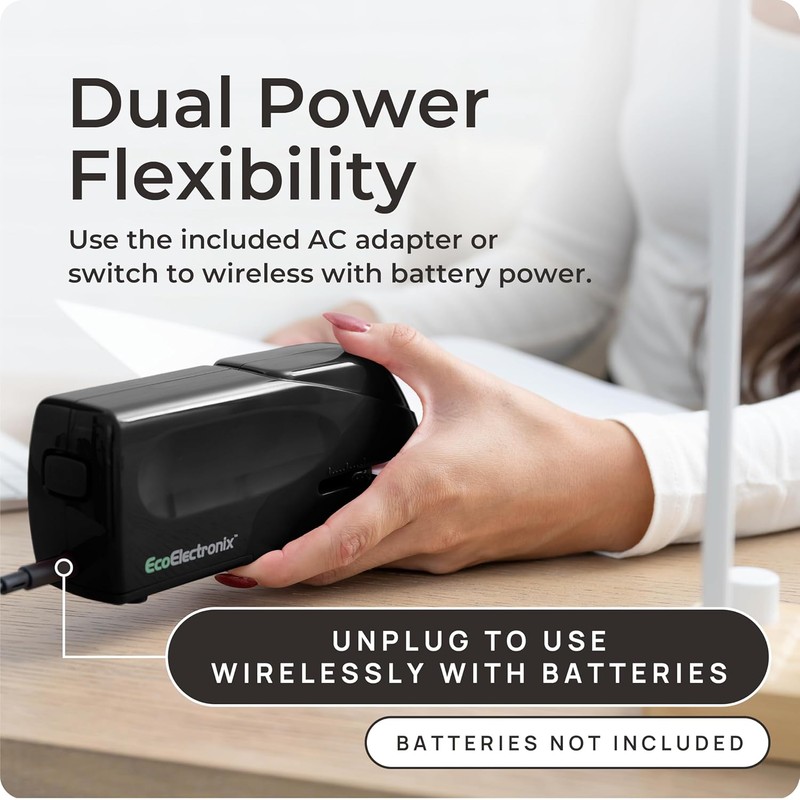 - DUAL POWER SUPPLY: Powered by either AC adapter or 6 AA batteries. With versatile power options, you have a battery powered cordless stapler at your convenience or a desk stapler in the office, school, studios etc.