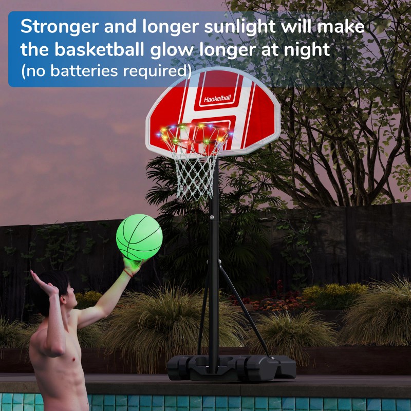 2. [Glowing Basketballs]: Includes two 8-inch basketballs made of special materials, no batteries needed. Simply place them in a sunny outdoor area, becoming brighter the longer they’re left. Enjoy every dribbling, passing, and shooting with added charm.