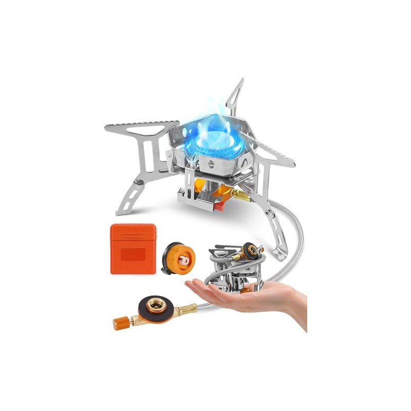- 【Fast, Efficient, and Powerful Cooking】Our portable camping gas stove boasts a robust 3500W burner, delivering rapid heating for efficient cooking. With its high-performance design that resists strong winds, it can bring 1L of water to a boil in just 2 minutes, ensuring you finish your tasks quickly.