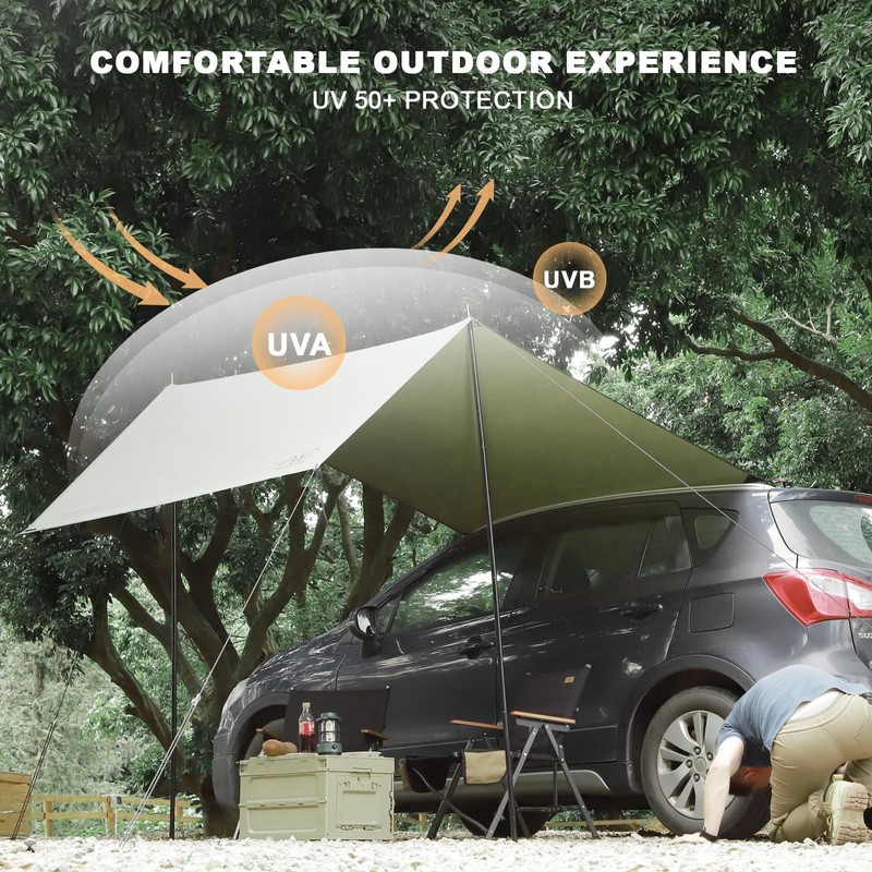 FEIWOOD GEAR Portable Car Awning for SUV, Vehicle Awning for Camping Van Truck, Needn't Roof Rack Hardwares Waterproof UV50+