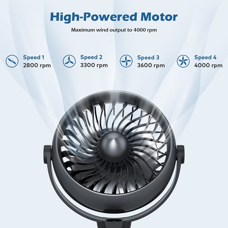 Portable Car Fan for Baby, Battery Operated Vehicle Cooling Fans, 4 Speeds, C...