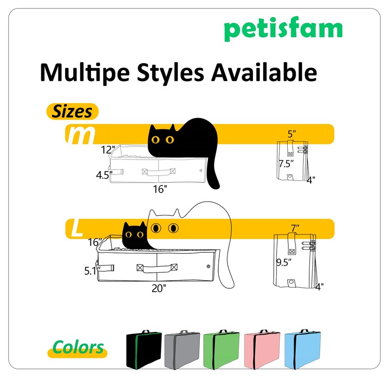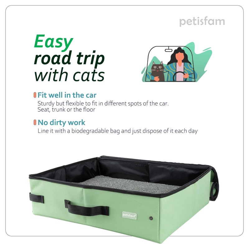 - Easy travel with medium cats or kitties. The petisfam litter box offers a easy way to accommodate your cat’s bathroom needs and gives great convenience to you when you are traveling with your cats