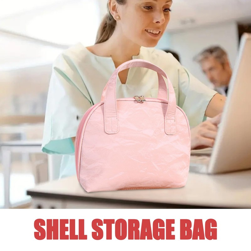 - Textured Handles for Grip Comfort: This toiletry bag combines textured handles for improved grip comfort, with a visually appealing shell-shape design, ensuring both functionality and elegance are perfectly balanced