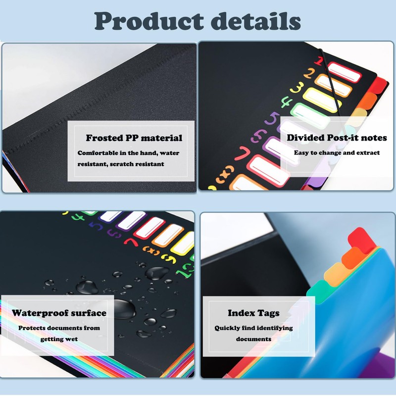 - Assorted storage: the folder offers 12 compartments for storing many things to store different data or files in categories that are easier to find.