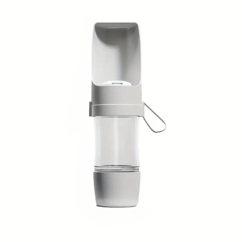 Portable Dog Water Bottle for Travel, Walks & Outdoor Use -BPA-Free Pet Drinking Dispenser with Built-In Trough & Carry Strap - Compact and Lightweight for Hiking - Car Rides (Grey, 20cm)
