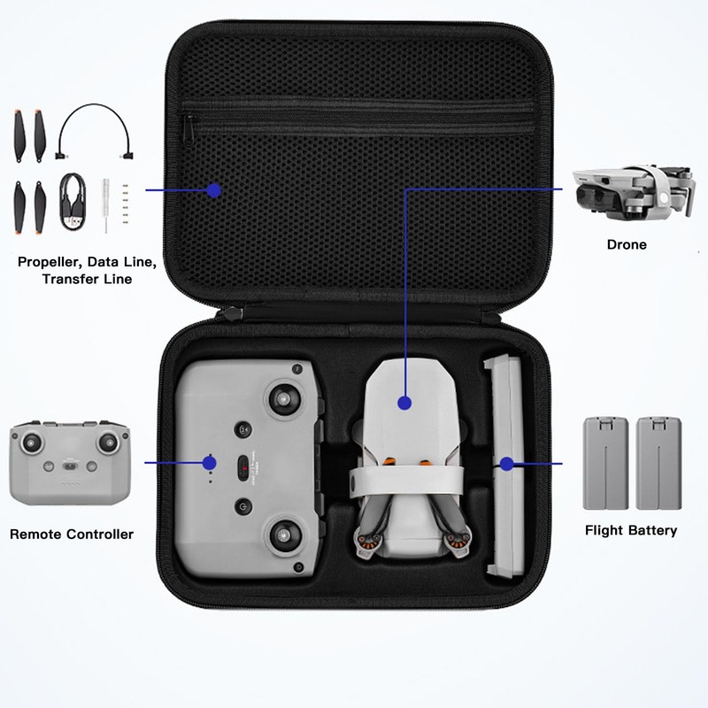 - Storage Solution: This portable carrying case is suitable for Mini 2, for Mini 4K, and for Mini 2 SE, storing drone, remote controller, 2pcs battery, USB charger and cable, propeller cover, tools, etc